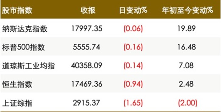l 美股主要股指周二小幅收低,投资者将注意力转向了Alphabet和特斯拉的最新财报。美国公债收益率下跌,此前公布的楼市数据疲软,两年期公债标售需求强劲。日元兑美元连续第二个交易日上涨,受助于日本一位高级政治官员有关货币政策正常化的发言,加剧了日本央行继续加息以提振日元的预期。金价上涨,打破四日连跌的局面。
