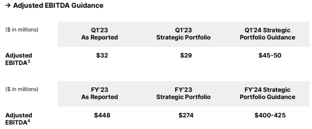 如果直接一点看公司自己披露的“Strategy Portfolio”在2023年和2024年的收入(指引)情况,也能看到一个加大负增长的惨淡前景。只是少了亏损的业务,利润会看上去好一些。