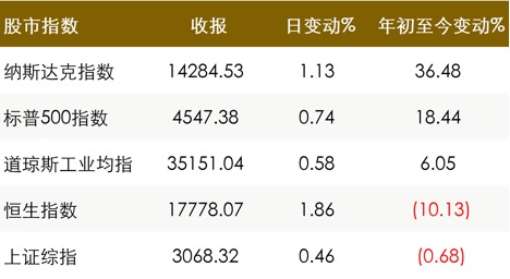 l 美国股市三大股指收涨,纳指领涨,前OpenAI首席执行官Sam Altman将加入微软,激励微软股价创纪录新高。美国公债收益率下跌,财政部标售160亿美元20年期公债,获得强劲需求,表明市场仍预期通胀将放缓。美元指数跌至2个多月来最低,延续前周跌势,金价走低。油价攀升逾2%,因OPEC+成员国有望在下周初的会议上宣布进一步削减供应量。