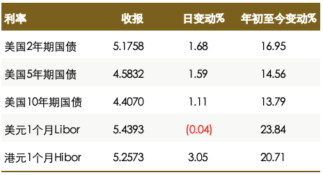 l 美联储维持利率不变,但立场更趋鹰派,警告称对抗通胀的战斗远未结束,预计年底前将再加息一次,美国股市周三大幅下挫,美元兑一篮子货币走高,美国两年期公债收益率触及17年最高,现货金略微收窄涨幅。油价下跌至一周低点。