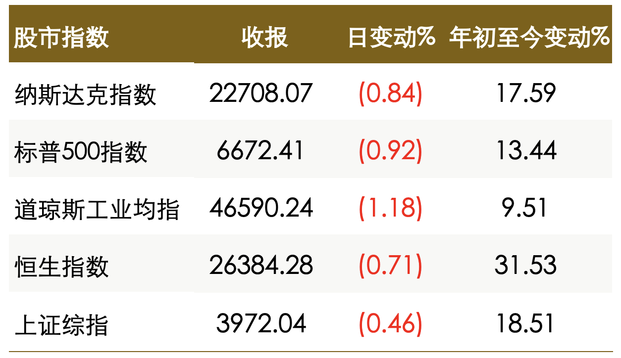 美联储副主席称就业市场下行风险升高,理事Waller支持下月降息。中国10月广义财政支出创四年来最大降幅。