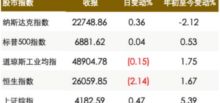 美股三大指数回稳。道指微跌0.15%,标普500指数则微升2点,纳指表现较佳,升0.36%。反映中概股表现之金龙指数则跌逾1%。